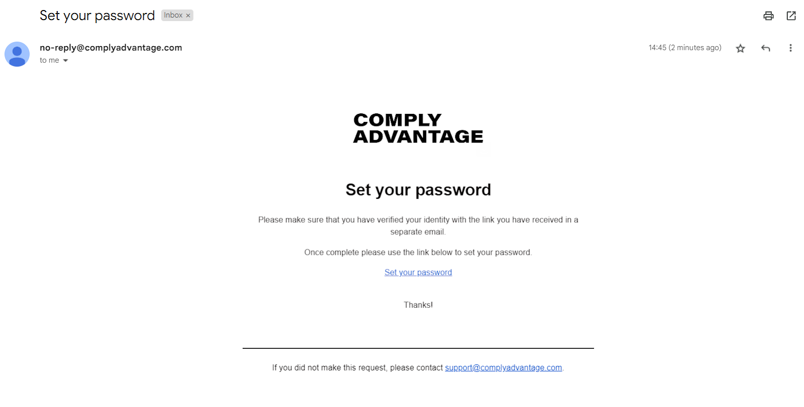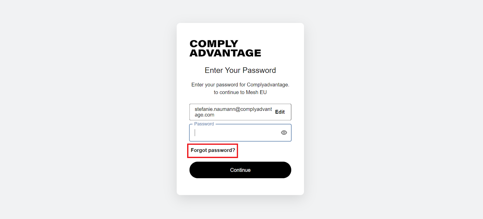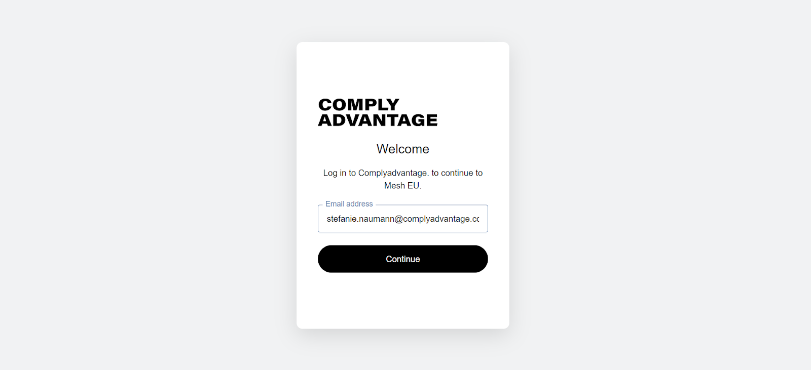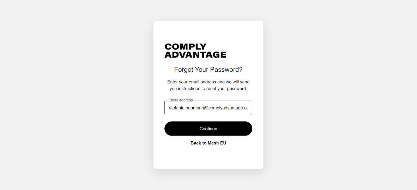 Return to https://eu.mesh.complyadvantage.com to log in.