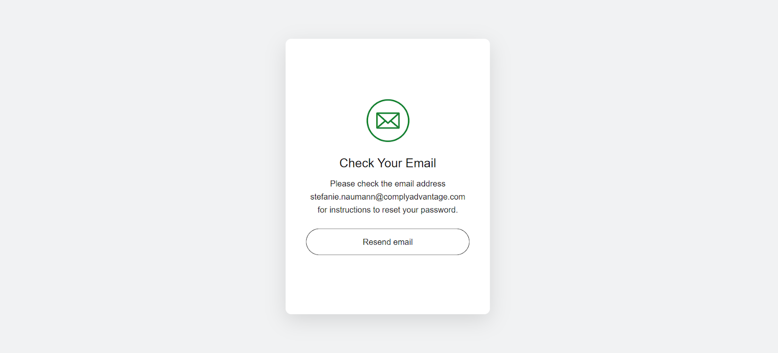 You see a notification asking you to check your email. If the email does not arrive, click the Resend email button to send another.