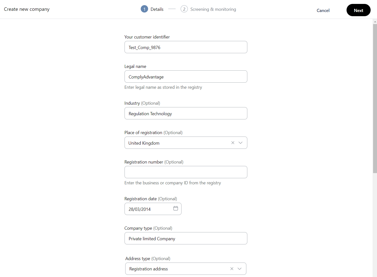 We recommend completing as many of the customer information fields as possible to improve the accuracy of screening and risk assessment.