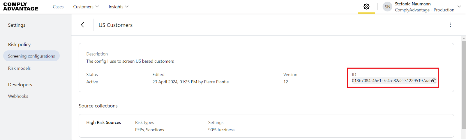 Fill in the ID of the screening configuration that should be used. The ID can be copied from the screening configuration page in Settings.