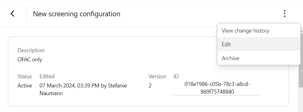 Select the screening configuration you want to edit from Settings > Screening configurations.