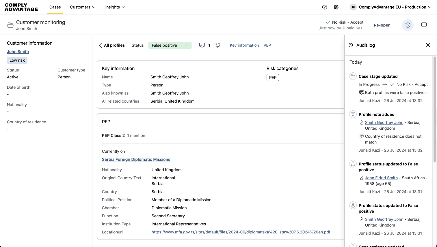 Viewing the audit trail for a case