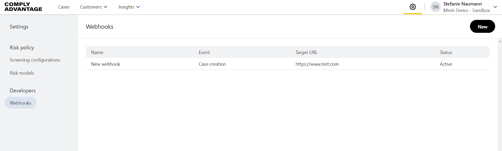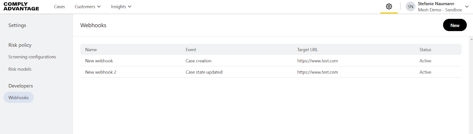 Using webhooks, you can synchronise information and actions between ComplyAdvantage Mesh and your internal applications, without requiring manual updates or checks.