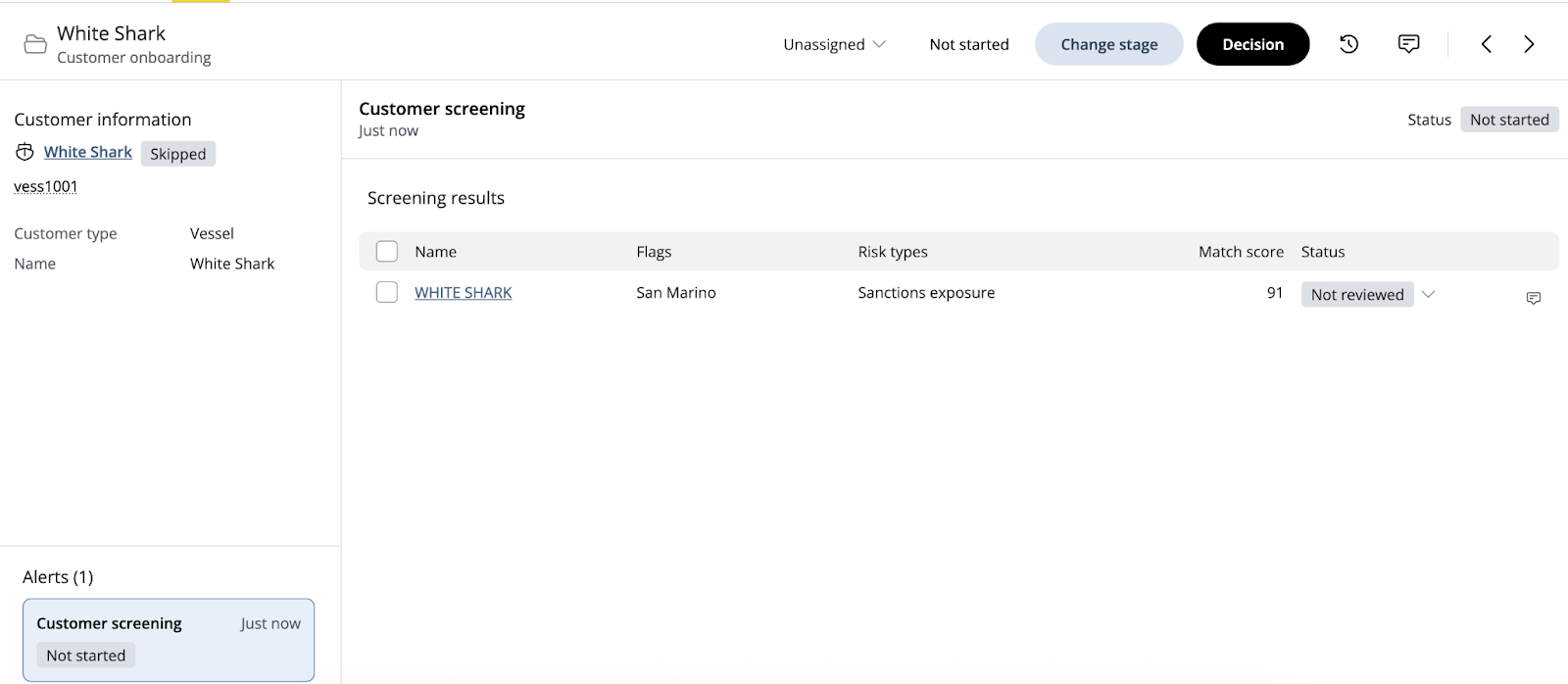 If screening identifies potential matches, the vessel will appear in the Cases tab.