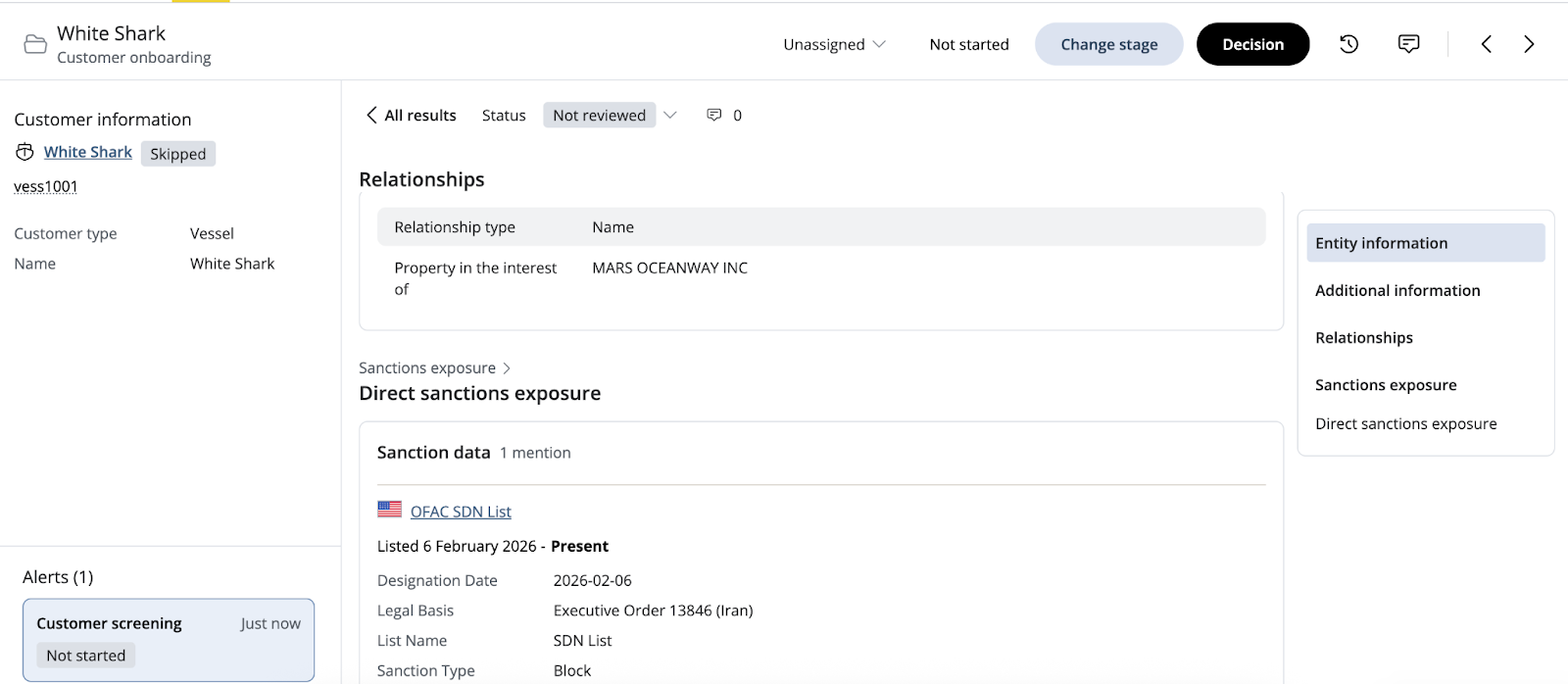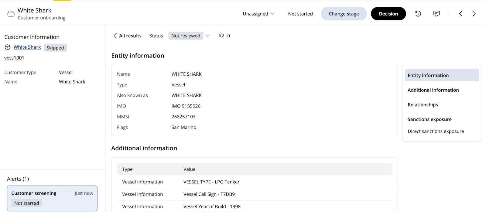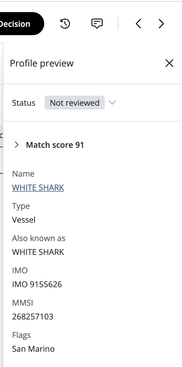 We have introduced a distinct Vessel entity type to the Mesh customer schema. This allows you to screen vessel names against maritime-specific risks.