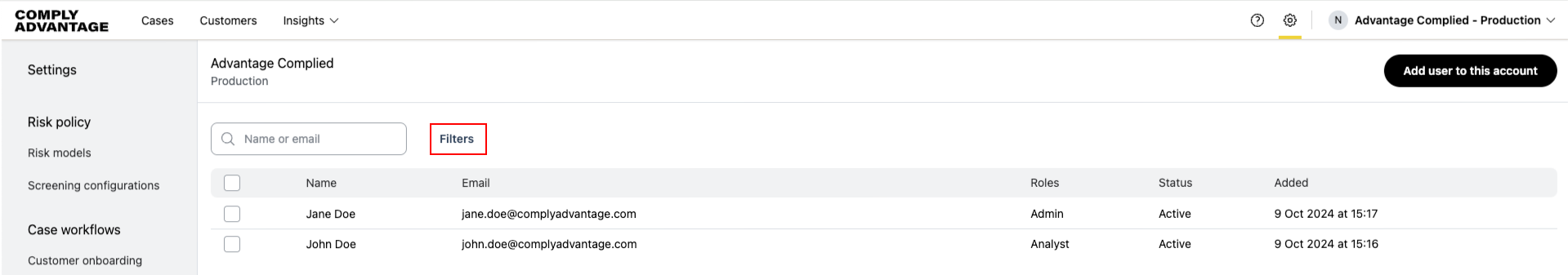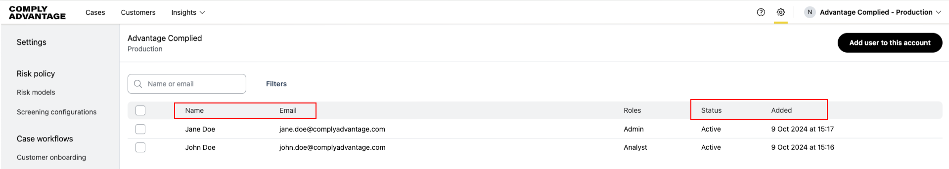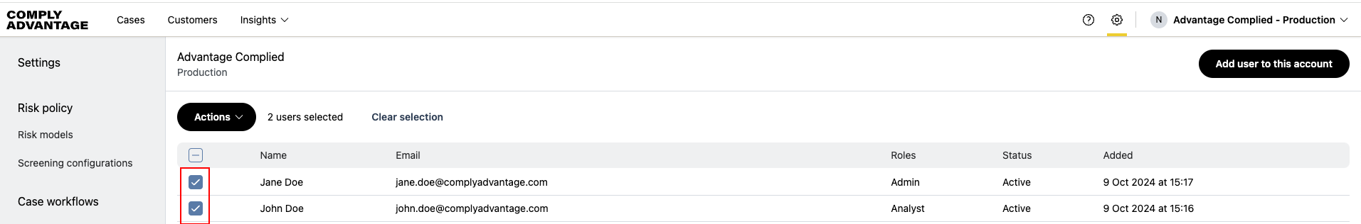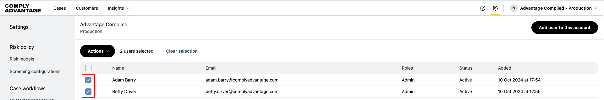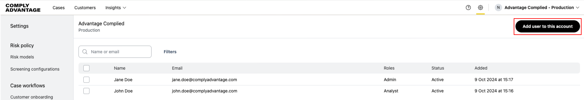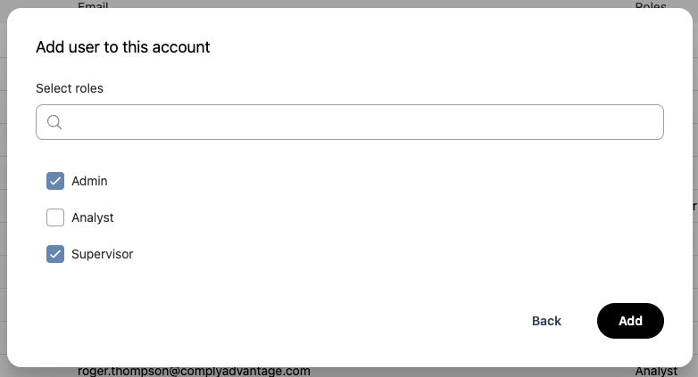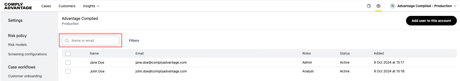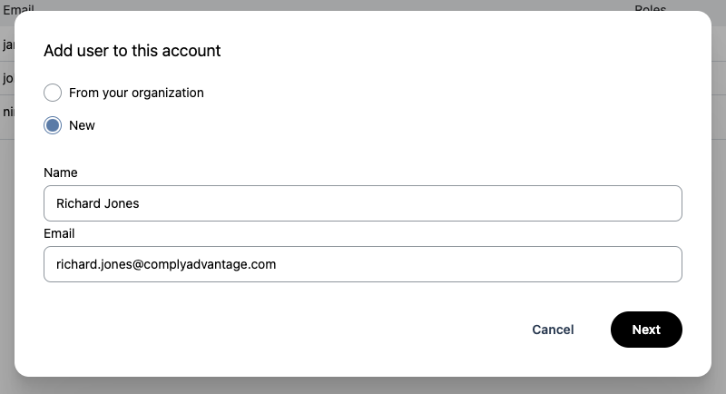 The user management feature in ComplyAdvantage Mesh makes it easy for you to create and manage users, and adjust their access level in your accounts.
