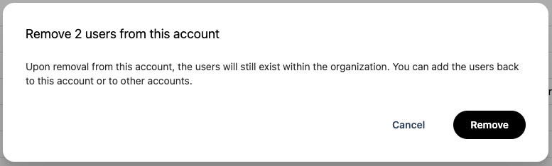 One or more users can be removed from the current account using the bulk functionality on the user list.