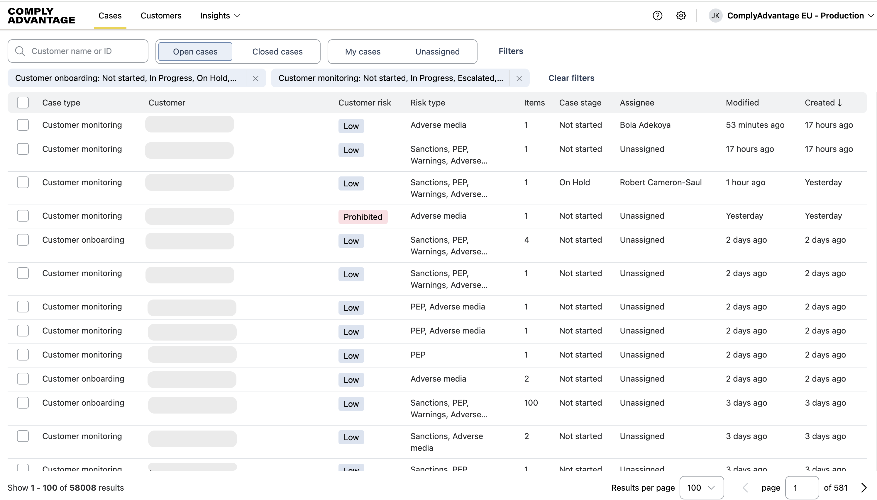 Customer risk
