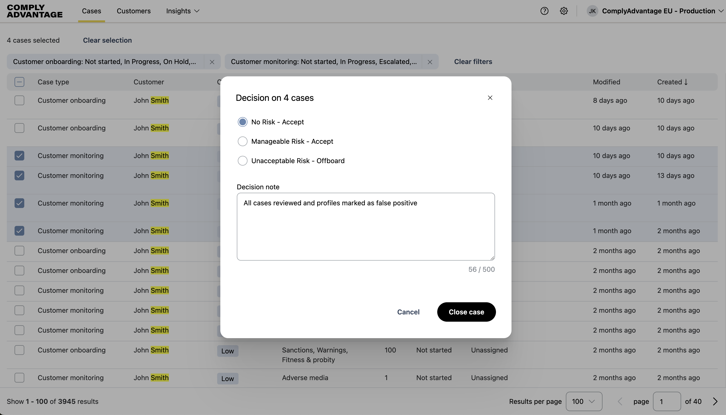 You can save time by closing multiple cases at the same time if you've made the same decision on them and want to add to same decision note.